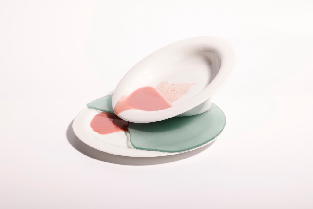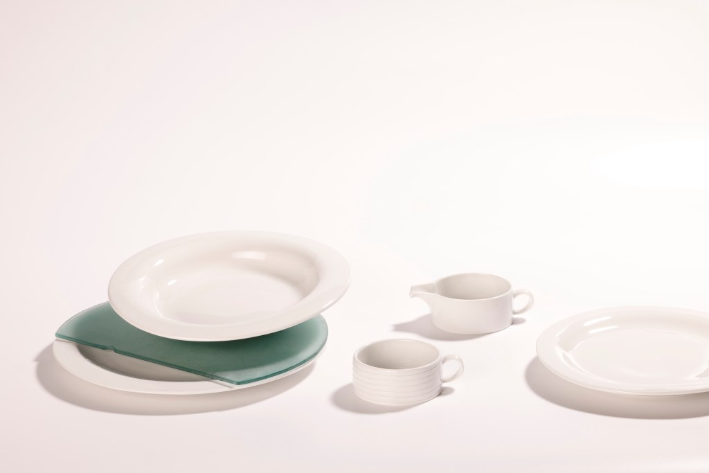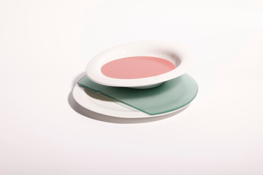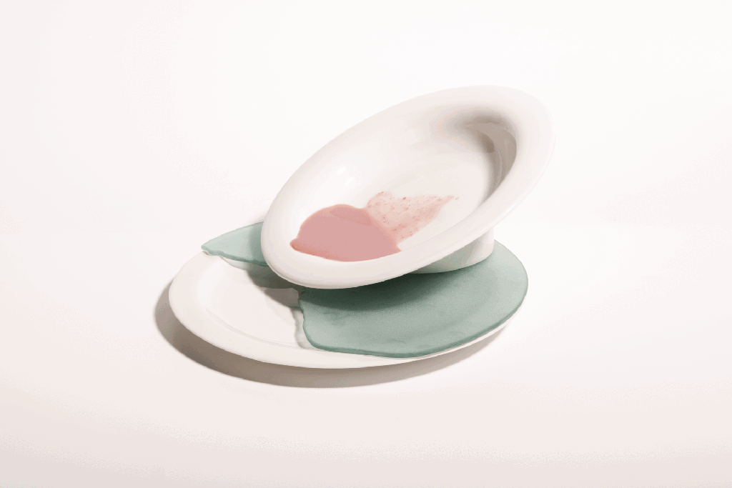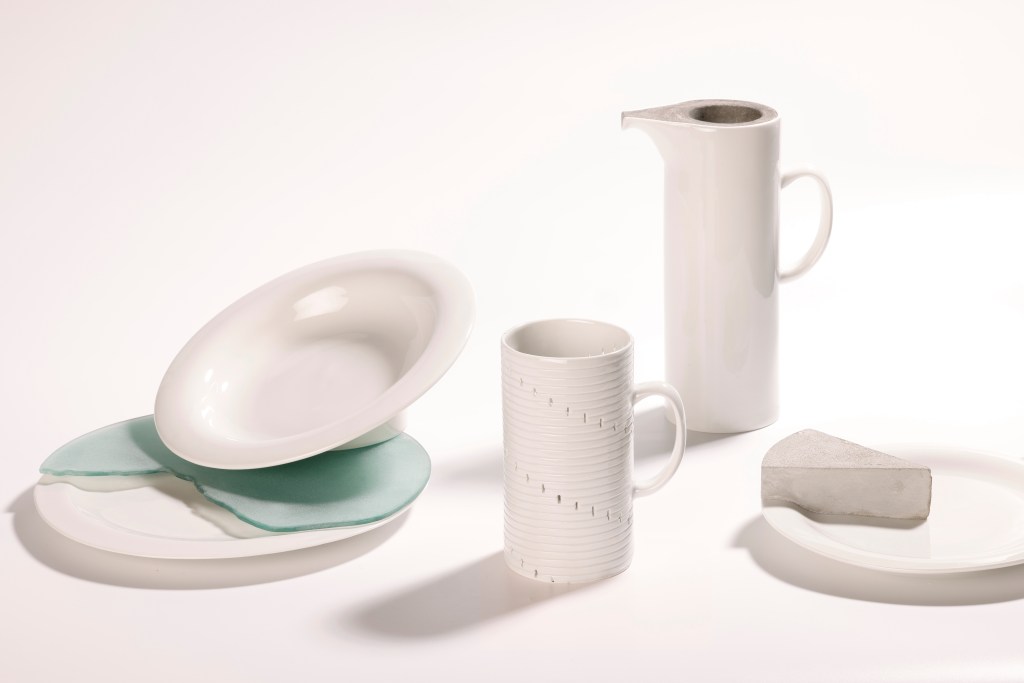 The flat plates are expressing sedimentation, i.e. the deposition of silt and the shoreline of the settlements. Sedimentation- is a consequence of erosion, so I have tried to show this relationship within the pair of objects. Since the soup plate is most often placed on the plate when it is served, it was almost self-evident that this relationship would bring the geographic process to life on the ‘dining table’.