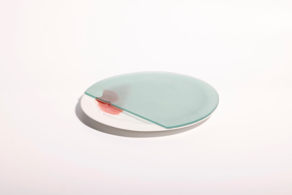 The negative ecological impact of organic matter entering Lake Balaton is expressed in terms of the dysfunction of inaccessibility. The surface of the water is provided by a green flat glass – fixed on top of the plate – which does not completely cover it. The colour of the glass is reminiscent of Lake Balaton, and the drawings show the shorelines of the respective settlements at a scale of 1:22400. The “gap” is therefore the land, through which the “nutrients” of the sloping agricultural areas (i.e. the slant soup plates) can flow under the glass (i.e. the water). The steeper the slope, the more runs off, as in the case of intensively cultivated sloping areas. In these areas, the continuous replenishment of nutrients in a negative spiral exacerbates the problem.