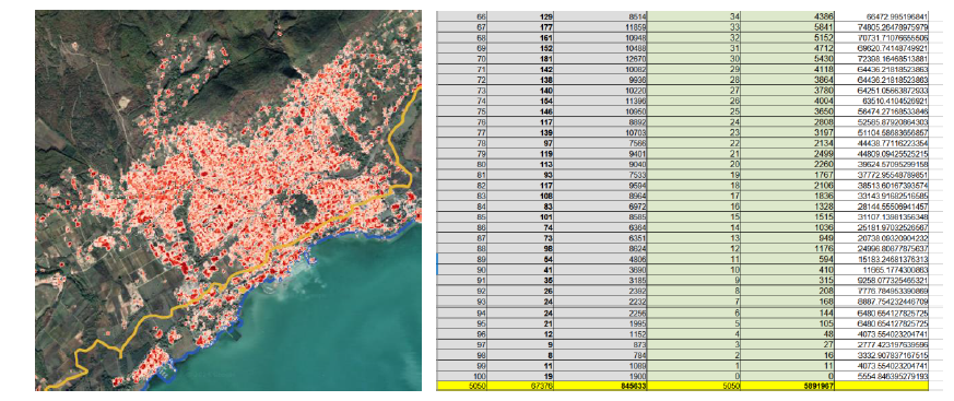 The source of data is the GHSL layer from the Copernicus 2015 satellite image. A 10 x 10 meter raster was used, which resulted in accurate data, and was visualized in QGIS software with the help of data visualization experts Attila Bátory and Mihály Minkó. The data were exported from the ancient Lake Balaton area of the given municipality, from which the percentage of coverage was calculated using a table.