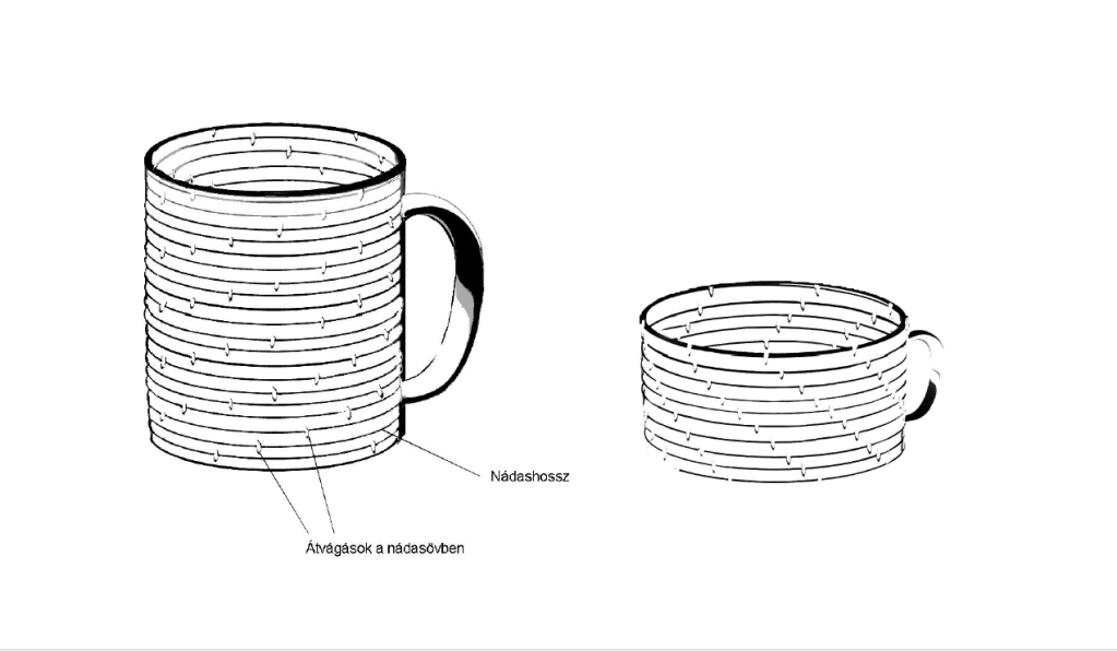 - a nádasok hossza és átvágásainak száma (bögre),