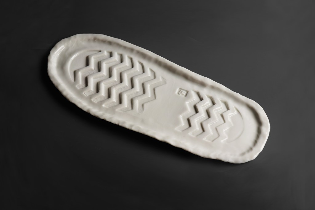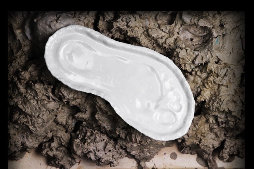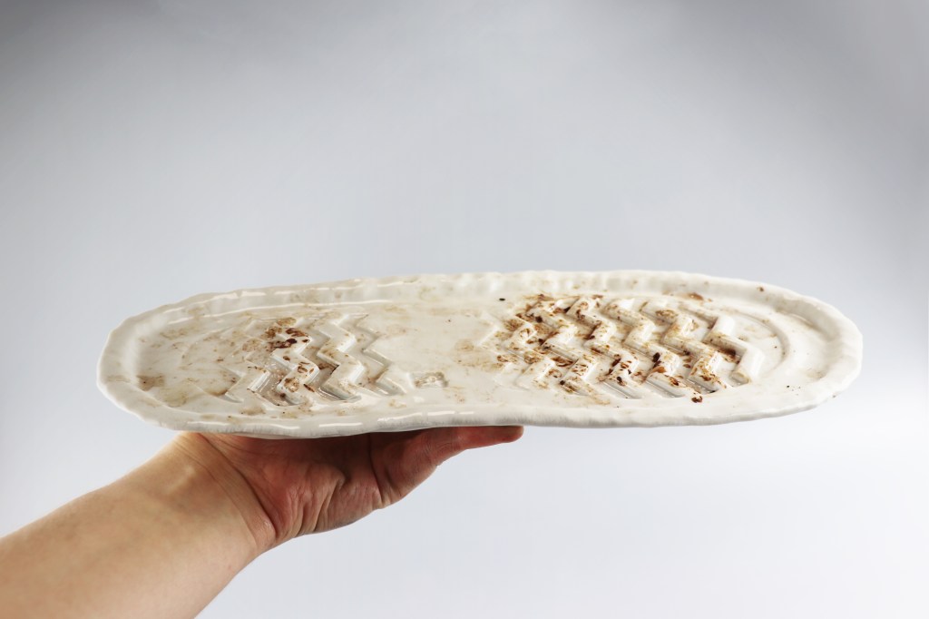 A “Talaj teríték” egy kísérlet a termőföld és az étkezés közötti gondolati távolságok lecsökkentésére, az asszociációk és összefüggések átjárhatóságának növelésére mindennapi étkezéseink során. A kollekció szemeteslapát alakú kerámiatálalókból és különböző talp lenyomatokat magukban őrző tálakból áll, melyek mindegyike gyümölcsök vagy snackek tálalásához használható.