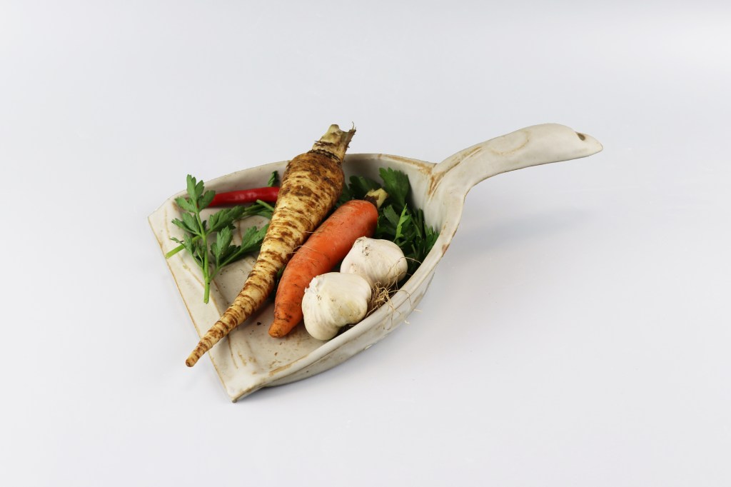 “Dirt” is a conceptual tableware which attempts to reduce our cognitive distances between soil and food as well as to increase the interconnectedness of these associations and contexts in our everyday meals. The collection consists of dustpan-shaped ceramic dishes and plates with different footprints, each of which can be used to serve fruit or snacks.