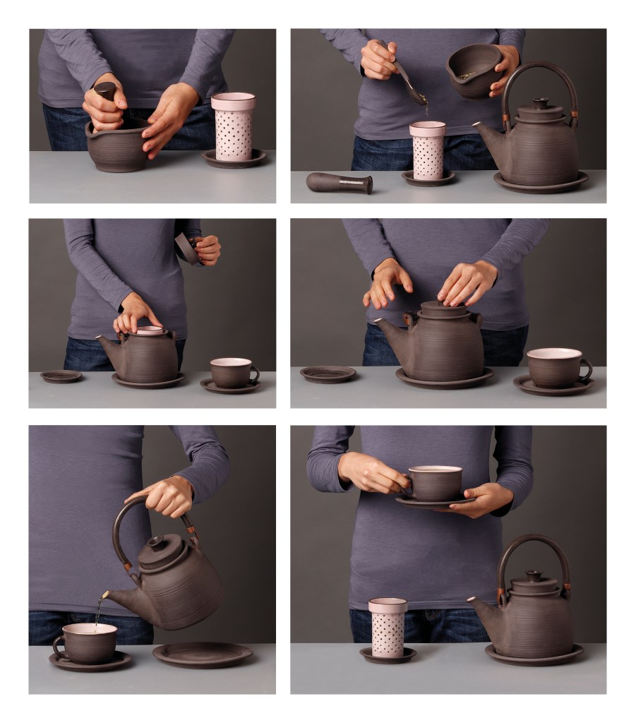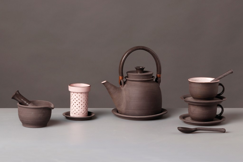 When designing the PURITEA herbal tea set my primary consideration was to create a reliable solution for making every kind of herbal tea. The key to this is a teapot made of flameproof material, with which – in addition to the loose leaves that can be prepared by scalding or cold soaking, herbs that require cooking can also be prepared safely, without the use of metals. The set made during my graduate semester is a formal preliminary study made on the potter’s wheel, so each piece carries the traces of craftwork. These makes the set unique and contributes to the enjoyment of tea and relaxation.