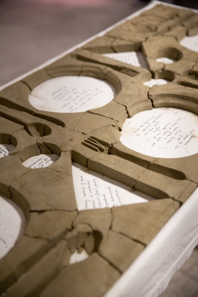 “Soil Loss for Supper” is an invitation to consume and digest soil-related issues and the possible regenerative solutions as well. An opportunity for making physical contact with the cracked soil on top of the table and as well as knowledge about the soil-related facts that appear in the places of the tablewares. A thanksgiving rather than a memento, because the possibility of change is still in our hands.